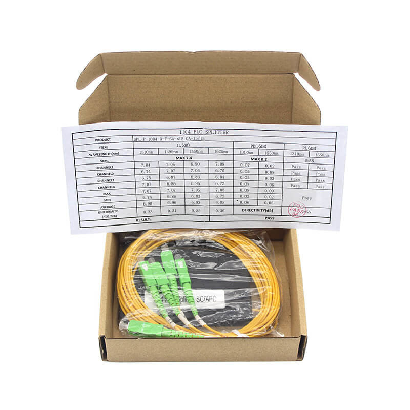 PLCスプリッタは,ローカル機器と端末機器をEPON,BPON,GPONネットワークに接続するために使用される二酸化シリコン波導体に基づいています.内部の光学部品とケーブルに完全な保護を提供します.快適で信頼性の高い設置のために設計されていますが,その容量は比較的大きいです.接続および配送製品 (屋外ファイバー配送箱) またはネットワークキャビネットに使用されます.